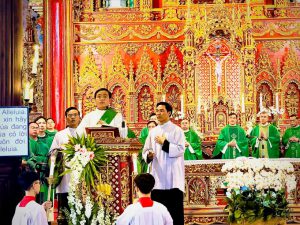 Vừa rồi tôi hân hạnh được về tham dự Thánh lễ tạ ơn mừng thượng vì và đặt long cốt nhà thờ Ninh Mỹ. Mặc dù công trình nhà thờ chưa xong, nhưng tôi rất cảm phục bà con giáo xứ đã xây dựng được ngôi nhà thờ vừa mang nét cổ kính vừa nguy nga hiện đại