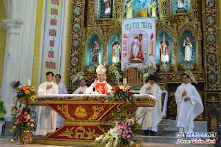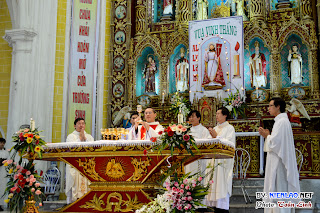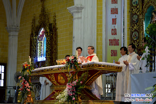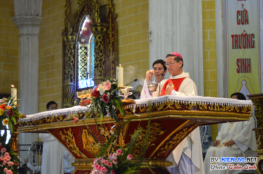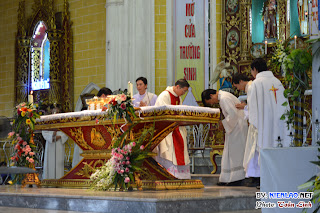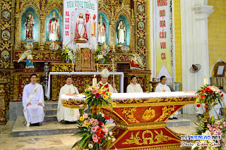 Đại diện 274 em dâng hoa lên Đức cha phó và quý cha đồng tế