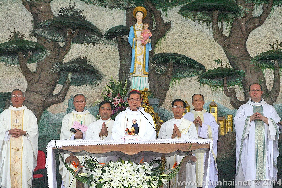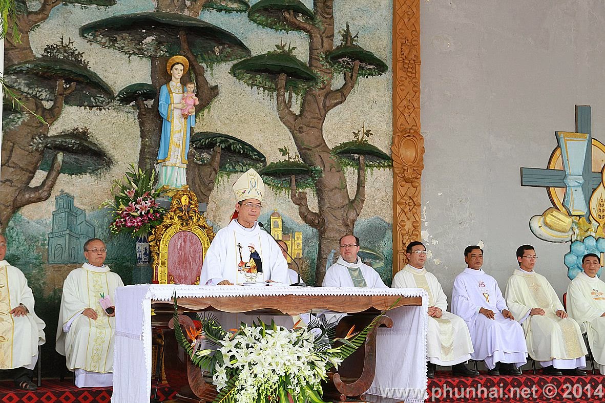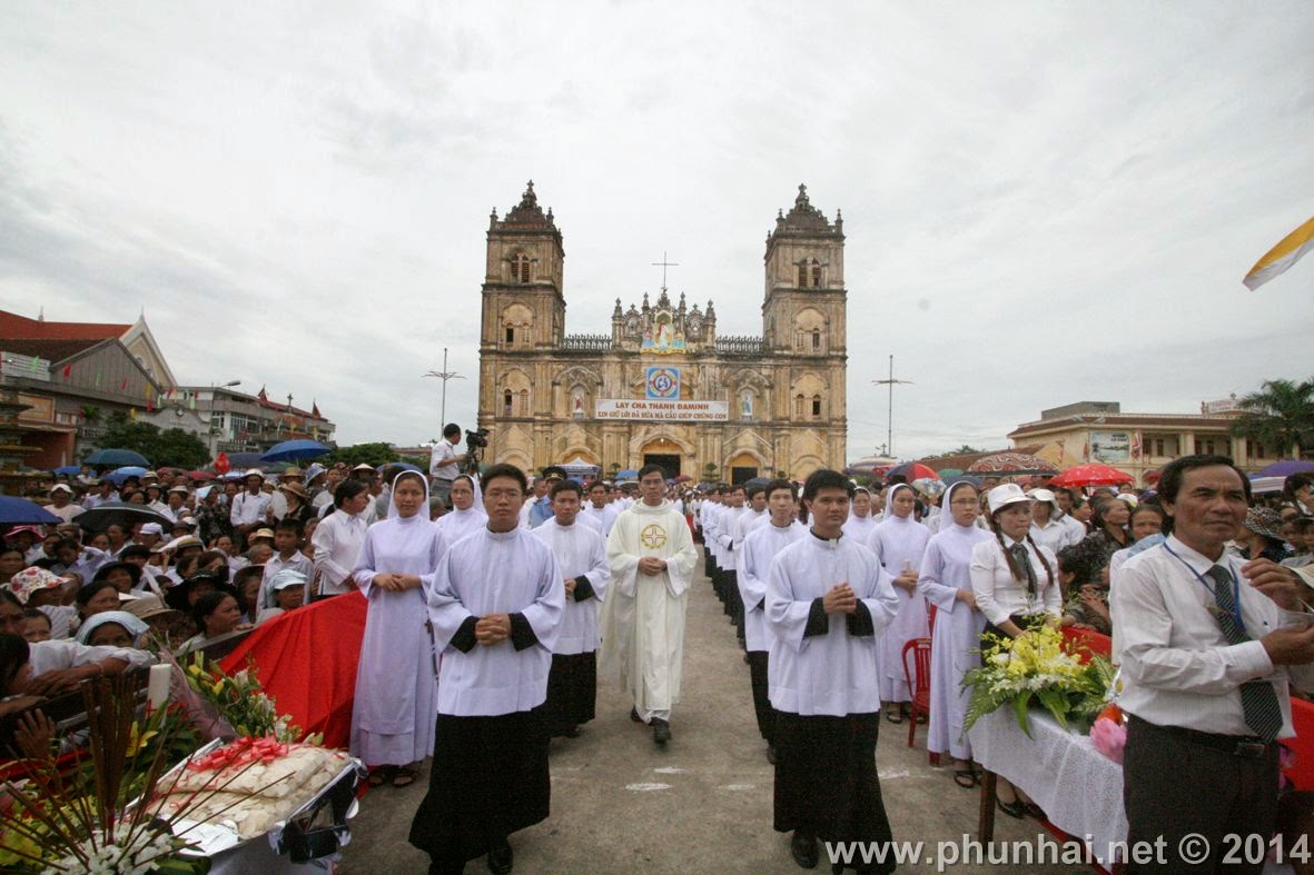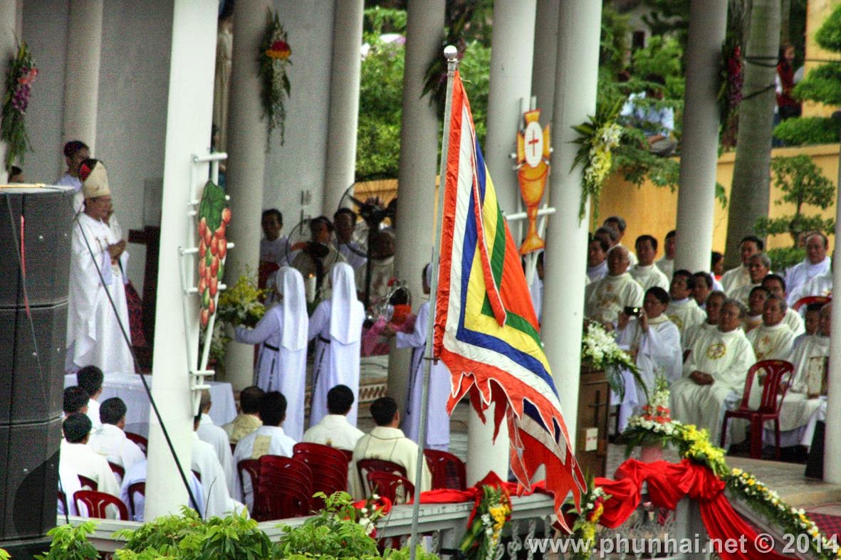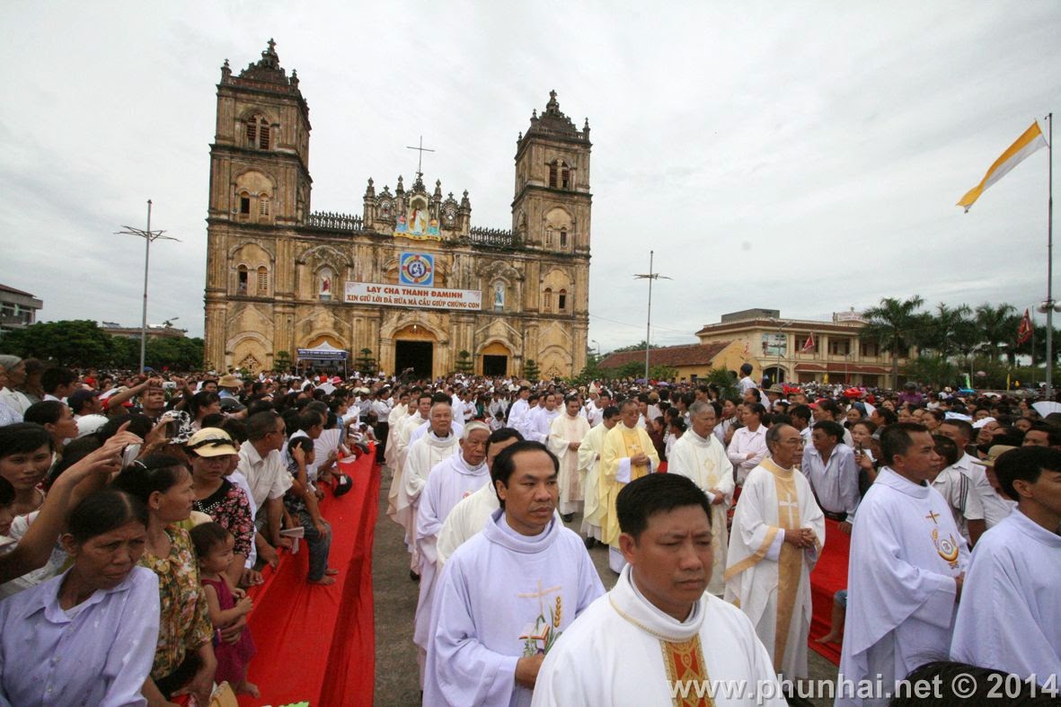 Lúc 08h30 cả cộng đoàn hướng về lễ đài nguyện kinh, bắt đầu cho 1 ngày lễ thật long trọng, 08h45 đoàn lễ nghi từ Tòa Giám Mục tiến ra quảng trường La Vang trong tiếng vỗ tay hân hoan của cộng đoàn, đi đầu là thánh giá nến cao, quý thầy Đại Chủng Viện Đức Mẹ Vô Nhiễm Bùi Chu, quý cha và Đức Cha Chủ tế. Thánh lễ được cử hành lúc 9h00 do Đức cha khả kính chủ sự, tham dự thánh lễ có hơn 150 linh mục, quý cha quản hạt, quý cha trong và ngoài giáo phận.