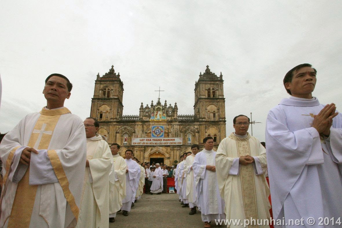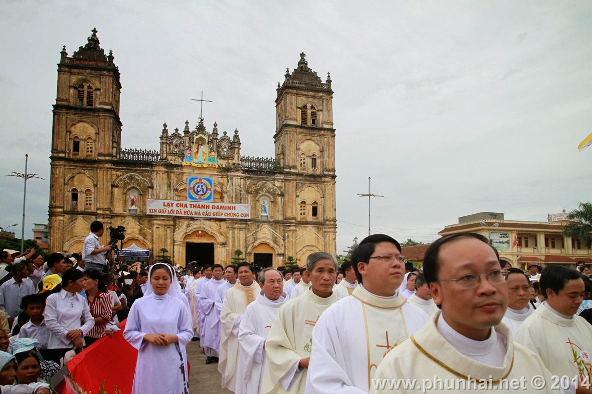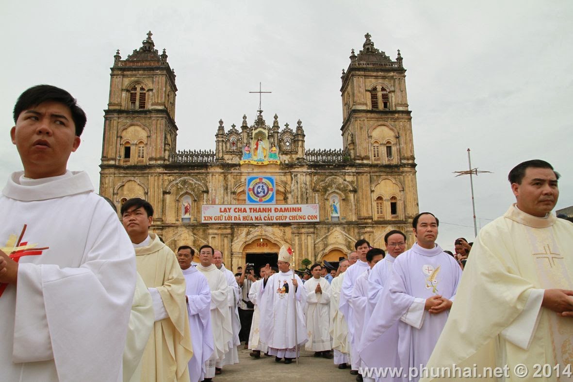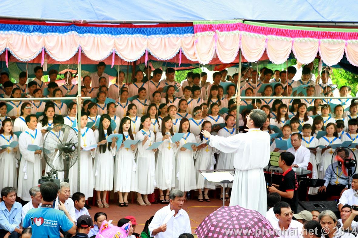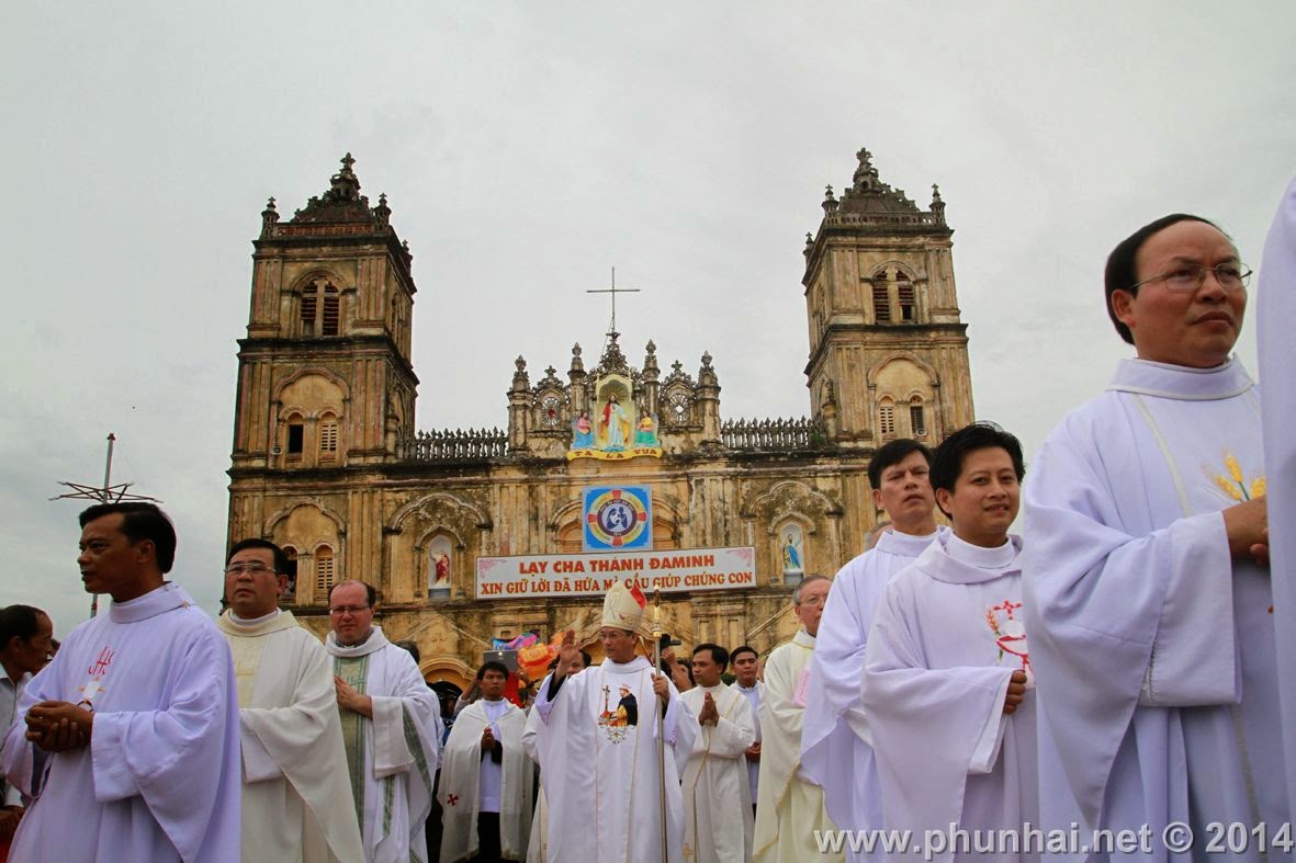 Lúc 08h30 cả cộng đoàn hướng về lễ đài nguyện kinh, bắt đầu cho 1 ngày lễ thật long trọng, 08h45 đoàn lễ nghi từ Tòa Giám Mục tiến ra quảng trường La Vang trong tiếng vỗ tay hân hoan của cộng đoàn, đi đầu là thánh giá nến cao, quý thầy Đại Chủng Viện Đức Mẹ Vô Nhiễm Bùi Chu, quý cha và Đức Cha Chủ tế. Thánh lễ được cử hành lúc 9h00 do Đức cha khả kính chủ sự, tham dự thánh lễ có hơn 150 linh mục, quý cha quản hạt, quý cha trong và ngoài giáo phận.