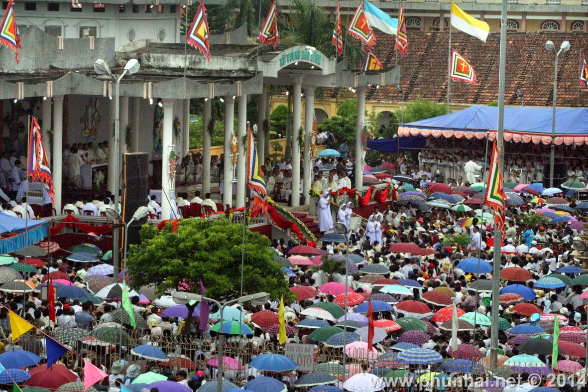 Ngay từ 07h00 sáng hôm nay, đã có hàng ngàn tín hữu, bằng các loại hình phương tiện khác nhau trên khắp các nẻo đường ùn ùn kéo về nhà thờ Chính Tòa, gần như các con đường hướng về Tòa Giám Mục và nhà thờ Chính Tòa, Bến đò Fa-ti-ma, Phố Bùi Chu đã chặt ních người, càng vào sâu bên trong càng thấy đông đúc, Ban tổ chức và Ban bảo vệ đã phải làm việc rất vất vả để phục vụ tốt nhất cho thánh lễ này.